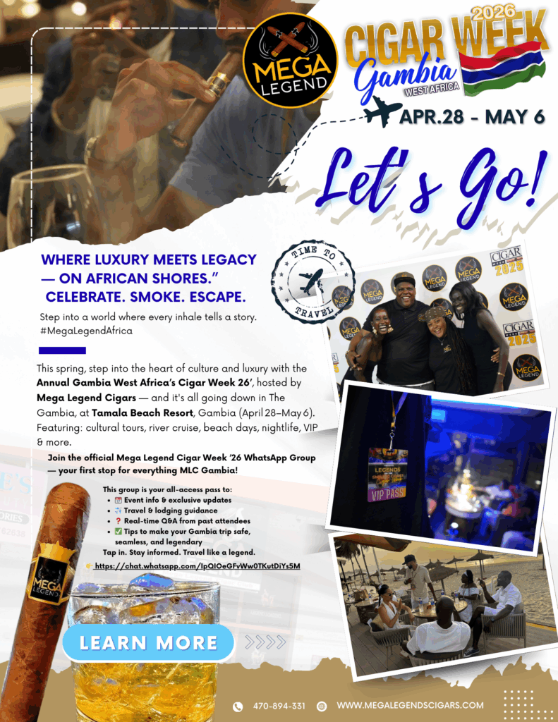This spring, step into the heart of culture and luxury with the Gambia West Africa’s Cigar Week 26′, hosted by Mega Legend Cigars — and it’s all going down in The Gambia.