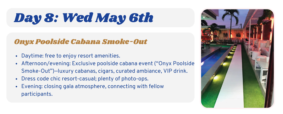 Mega Legend Cigar Week is where global cigar culture meets African heritage. It is where relaxation meets celebration. Where first-time travelers and seasoned explorers come together for a shared experience rooted in style, culture, and connection.